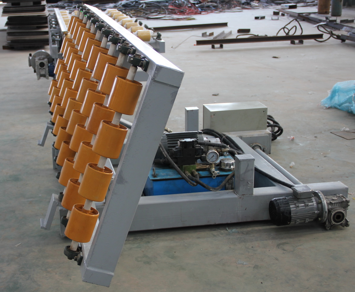? ??3.該機控制系統采用PLC終端控制,以液晶顯示觸摸屏終端為人機界面進行參數設定,設備運行過程中設有故障提示等等。該機適用于花崗石條板的連續磨削及拋光。板材輸送帶、磨盤橫移梁的工作速度均為變頻器調速;磨盤工作壓力、板材的磨削寬度在設定值范圍內可調。本機可對板材形狀自動識別,每個磨盤(磨頭)可根據識別板材的形狀自動升降,同時對板材磨削進行跟蹤記錄。整機均按標準化生產,性能穩定、故障率低等優點。